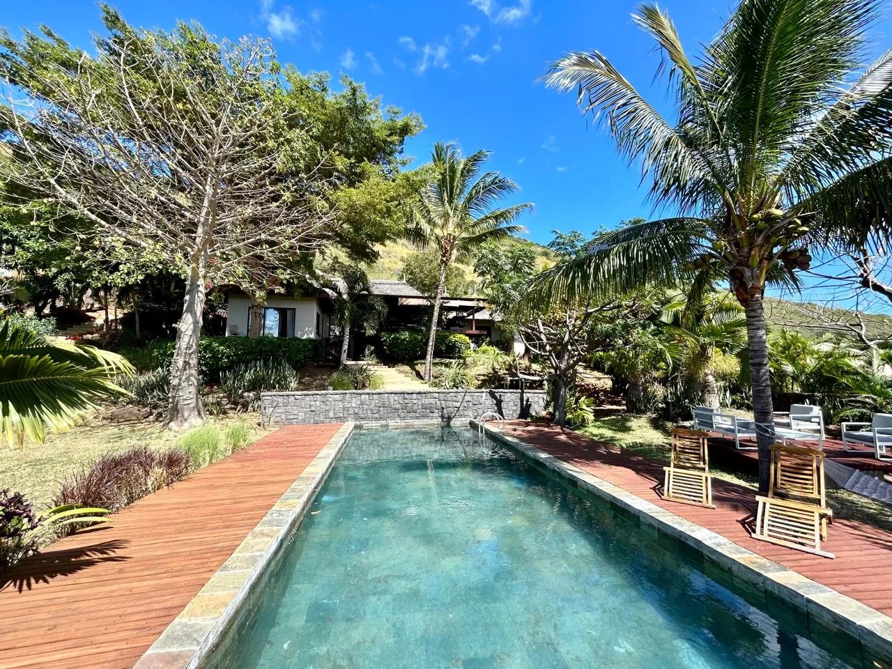 Located on the hillside of La Tourelle in Tamarin, this refined villa is set in a peaceful green environment, offering the perfect balance between nature and comfortable living.
